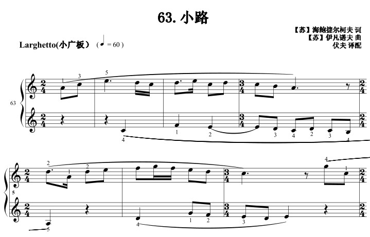 乐谱网 » 小路 幼儿 儿童 简易版 有试听 钢琴谱 钢琴双手简谱 正谱有指法
