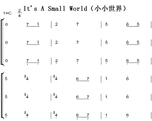 乐谱网 » It’s A Small World(小小世界 弹唱版)迪士尼 Disney 经典动画 钢琴双手简谱 钢琴谱 钢琴简谱