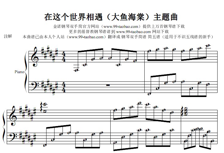 钢琴双手简谱