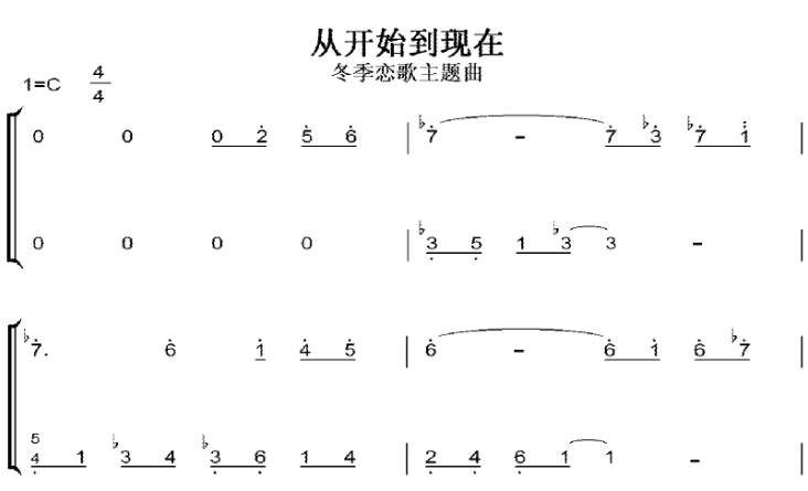 乐谱网 » 从开始到现在 冬季恋歌 主题曲 C大调 初学者 简易好听版 钢琴双手简谱 钢琴谱 钢琴简谱