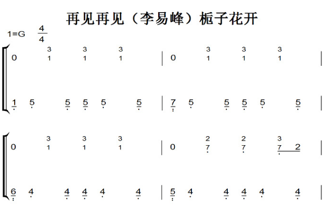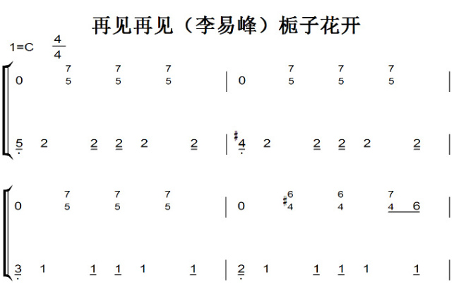 乐谱网 » 再见再见(李易峰)栀子花开 影视原声版 钢琴双手简谱 钢琴谱 钢琴简谱