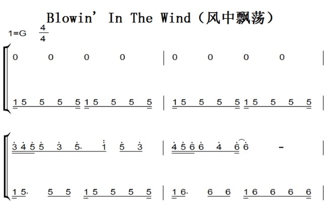 乐谱网 » Blowin’ In The Wind(风中飘荡) 影视原声版 钢琴双手简谱 简五谱 钢琴谱