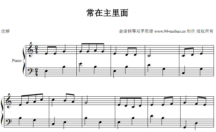 乐谱网 » 常在主里面(迦南诗选)小敏诗歌 基督教 教会 钢琴双手简谱 钢琴谱 全球首发